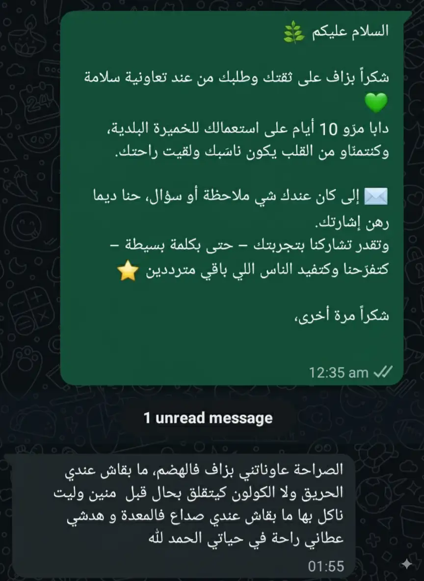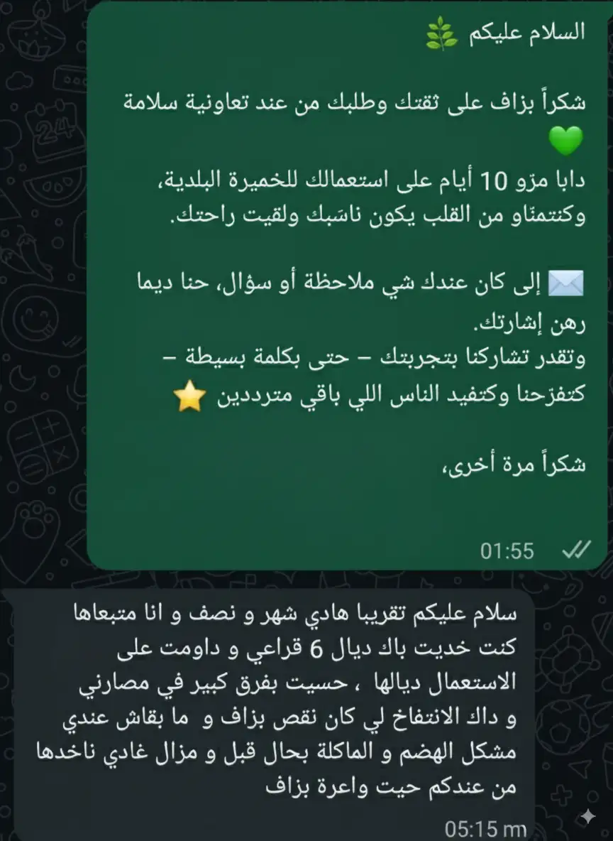 ما بقاتش النفخة والتقل في معدة، وليت ناكل مرتاح والهضم ديالي مزيان